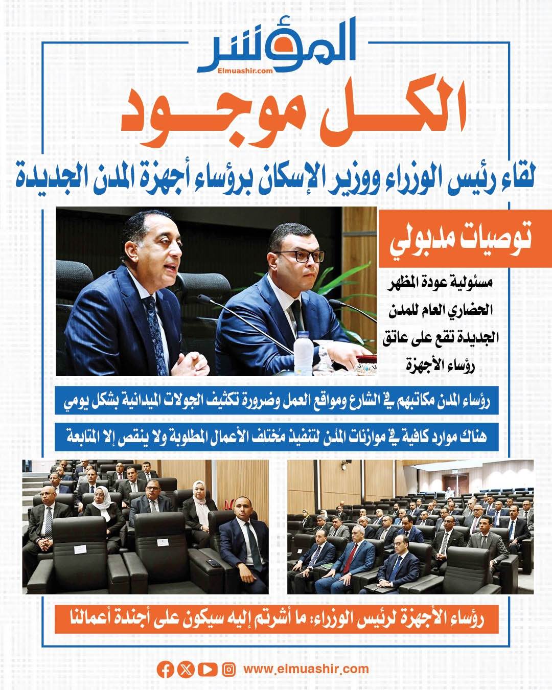 وزير الإسكان,رئيس الوزراء,مصطفى مدبولي,رئيس مجلس الوزراء,المؤشر,رؤساء أجهزة المدن الجديدة
