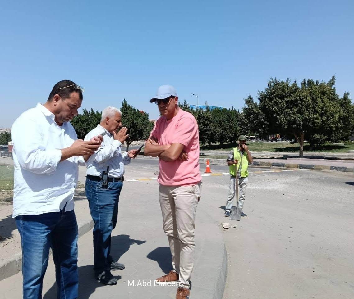 في سياق متصل، تفقد رئيس جهاز العبور، خلال جولة ميدانية، أعمال دهان المطبات وبلدورات الأرصفة بعدد من الطرق والمحاور الرئيسية، وكذلك مداخل ومخارج الأحياء، ضمن خطة شاملة لرفع كفاءة الطرق وتوفير بيئة مرورية آمنة ومنظمة.