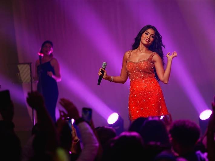 روبي تخطف الأنظار بفستان أحمر في حفلها بهولندا