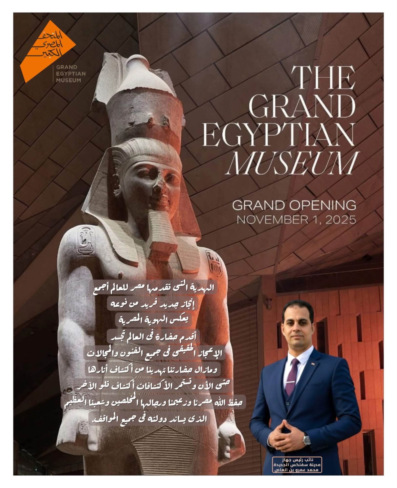 قال عبدالحليم: «المتحف المصري الكبير ليس مجرد صرح ثقافي أو سياحي ضخم، بل هو رسالة حضارية واضحة للعالم أجمع بأن مصر، مهد الحضارات، لا تزال قادرة على الإبهار وصنع التاريخ بفضل إرادة أبنائها ودعم قيادتها الواعية».