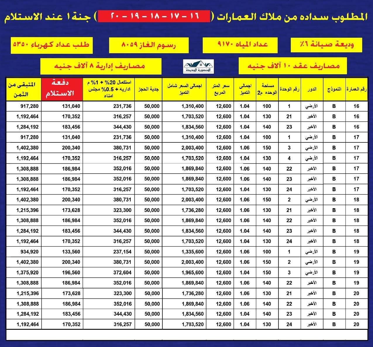 يستعرض «المؤشر» في الجدول التالي التفاصيل الكاملة للمبالغ المطلوب سدادها من كل وحدة سكنية.