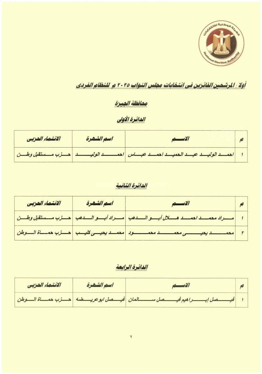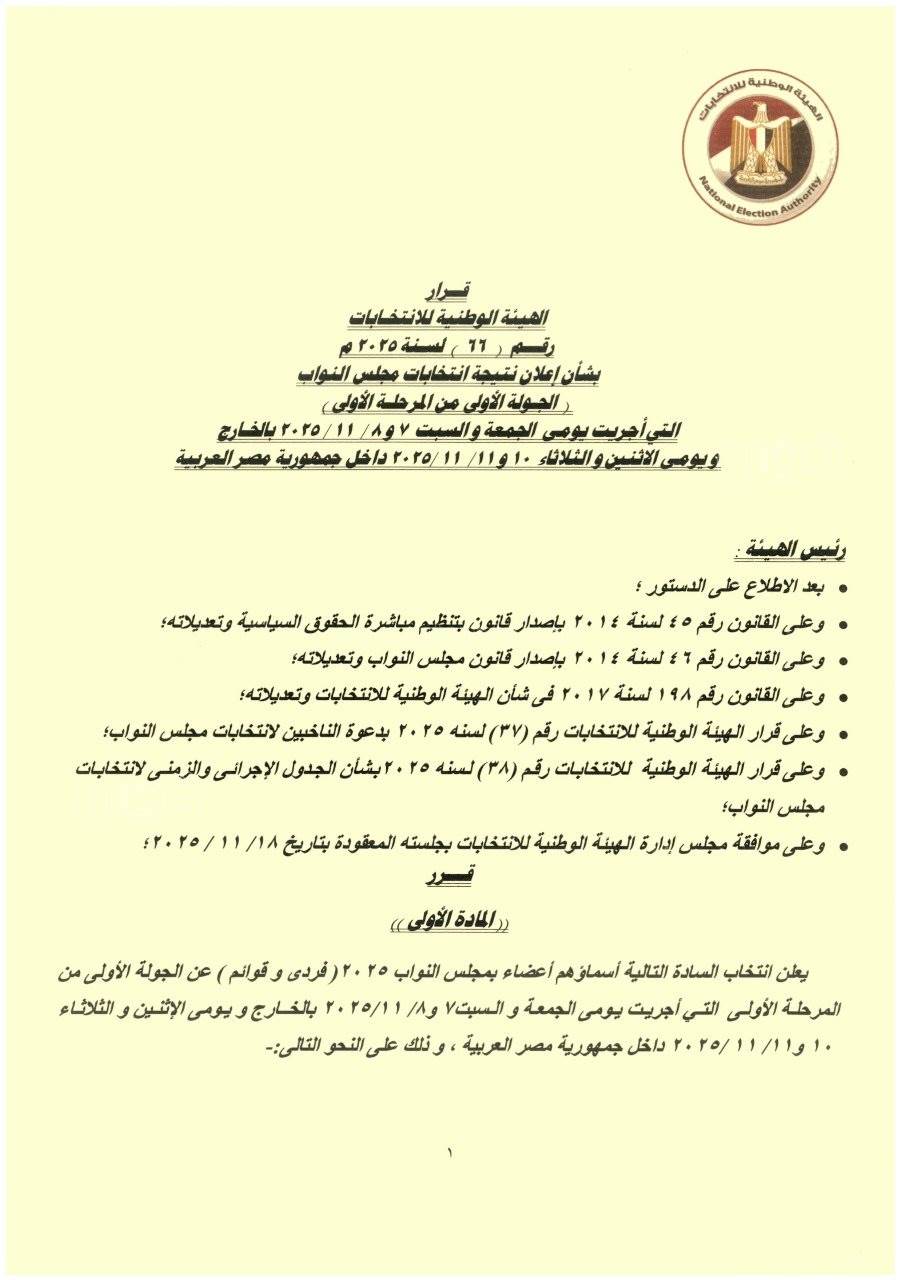 أسماء الفائزين بالجولة الأولى في انتخابات مجلس النواب 2025 (صور)