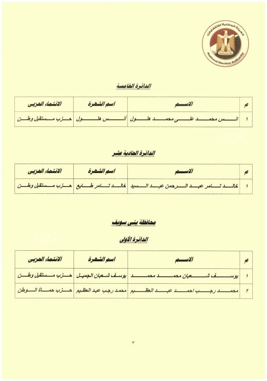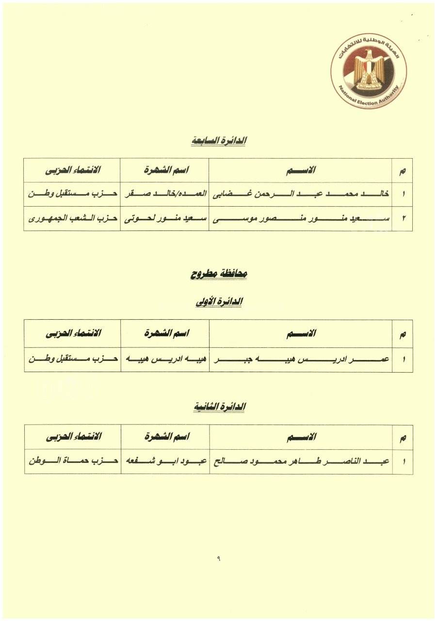 أعلن المستشار حازم بدوي رئيس الهيئة الوطنية للانتخابات نتائج الفائزين في المرحلة الأولى من انتخابات مجلس النوا