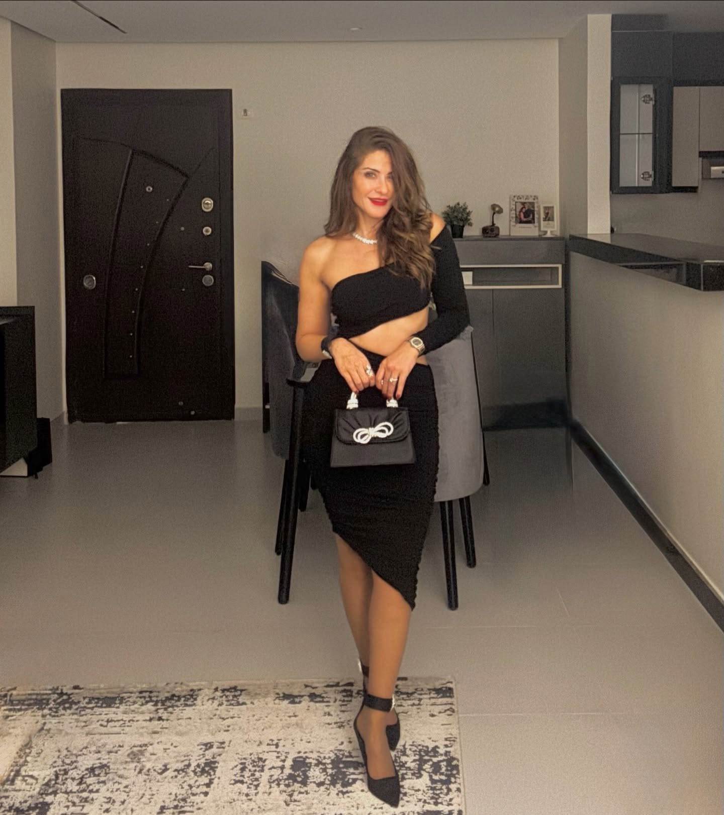 ظهرت النجمة هيدي كرم بإطلالة سوداء لافتة تجمع بين الجرأة والرقي، حيث اختارت توب غير متماثل التصميم يكشف عن أحد الكتفين ويبرز خصرها بأسلوب أنثوي جذاب. وتميّز اللوك بتنسيق ذكي يجمع بين البساطة والفخامة، ما منحها حضوراً قوياً أمام الكاميرا.