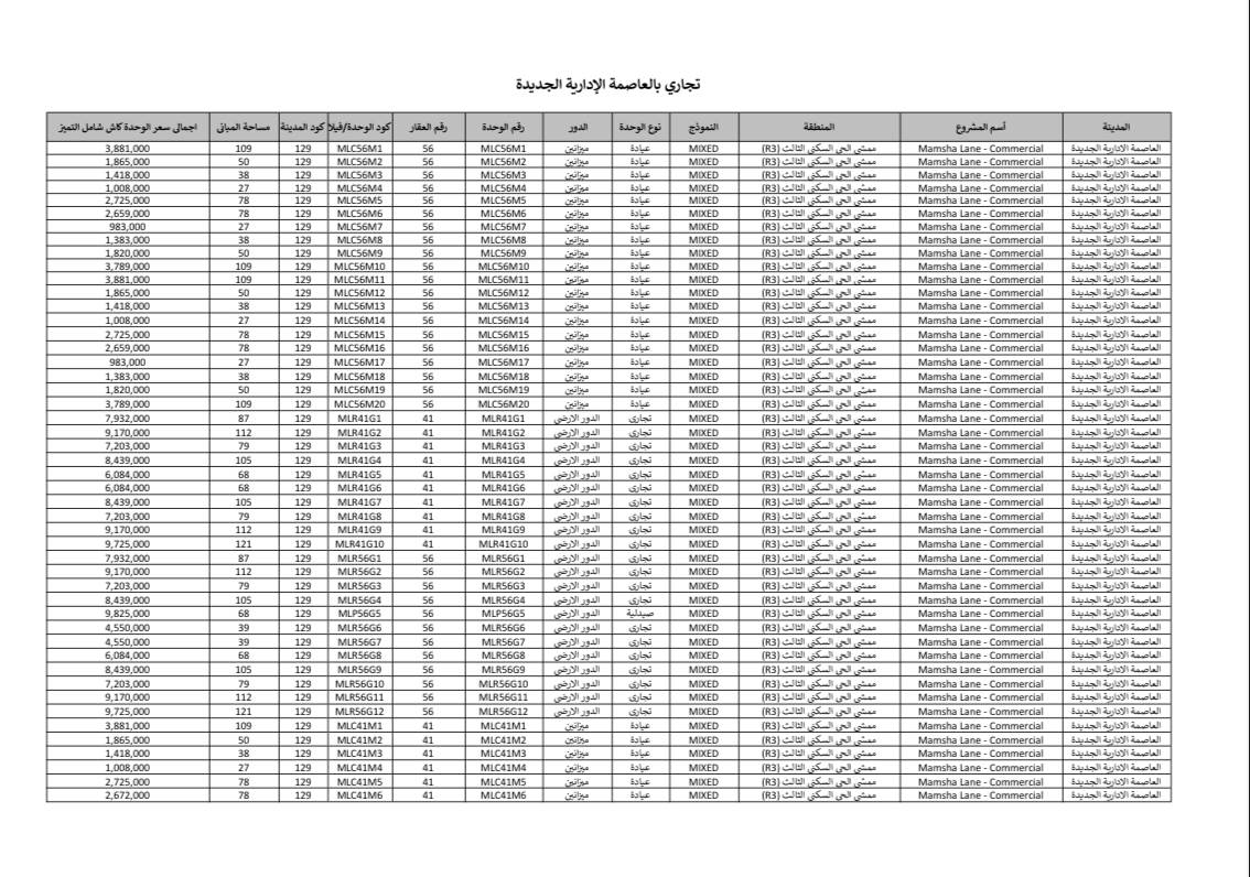 يستعرض «المؤشر» أسعار الوحدات بالعاصمة الإدارية الجديدة وفقا لكراسة الشروط كما يلي: