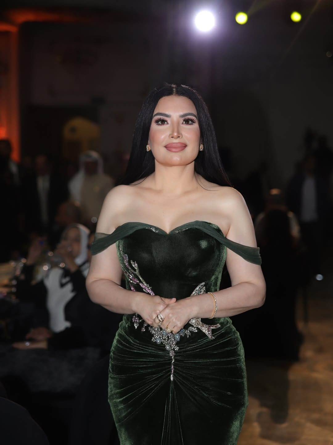 عبير صبري تخطف الأنظار بفستانها القطيفة في ملتقي التميز والابداع العربي