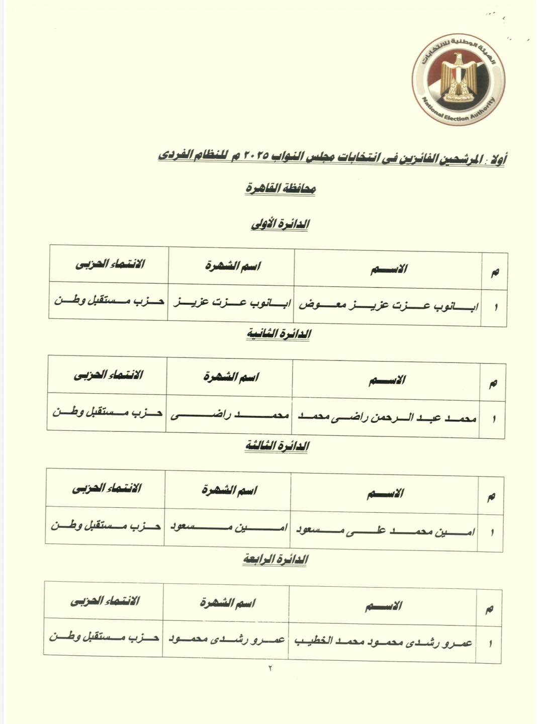 نتيجة انتخابات مجلس النواب في محافظة القاهرة (صور)