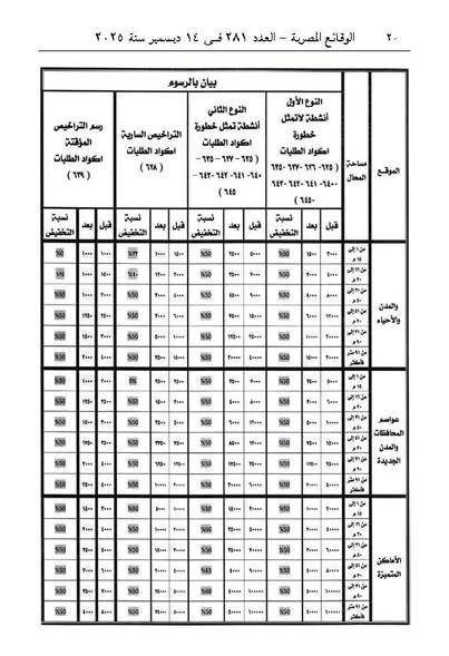ونشرت الجريدة الرسمية فى عددها الصادر أمس 14 ديسمبر 2025 بالعدد رقم 187 لسنة 2025 ، ونص القرار في مادته الأولى على: استثناء من قرار وزير التنمية المحلية رقم 31 لسنة 2022 يتم تخفيض فئات الرسوم التي تضمنها قرار وزير التنمية المحلية رقم 31 لسنة 2022 بشأن اعتماد فئات رسوم ترخيص المحال العامة وفقا للجدول المرفق للقرار الجديد وذلك لمدة 6 أشهر.