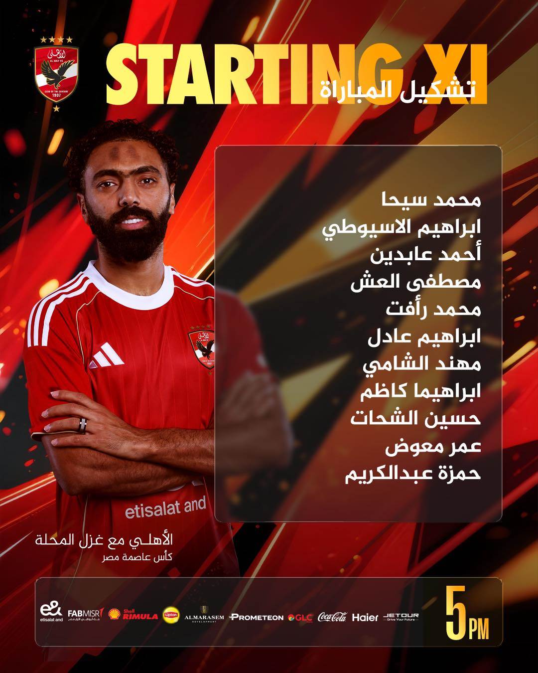 تنطلق مباراة الأهلي وغزل المحلة اليوم الثلاثاء في تمام الساعة الخامسة مساءً على استاد المحلة، وتُنقل المباراة عبر شاشة قنوات "أون سبورت"، الناقل الحصري لبطولة كأس عاصمة مصر.