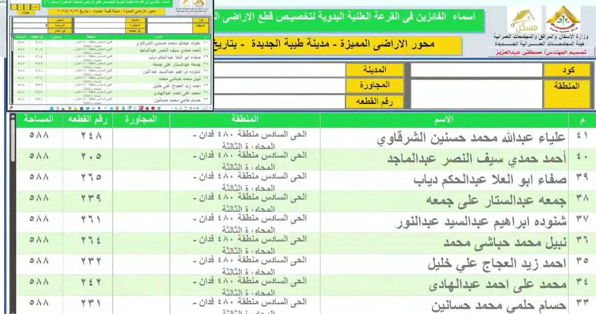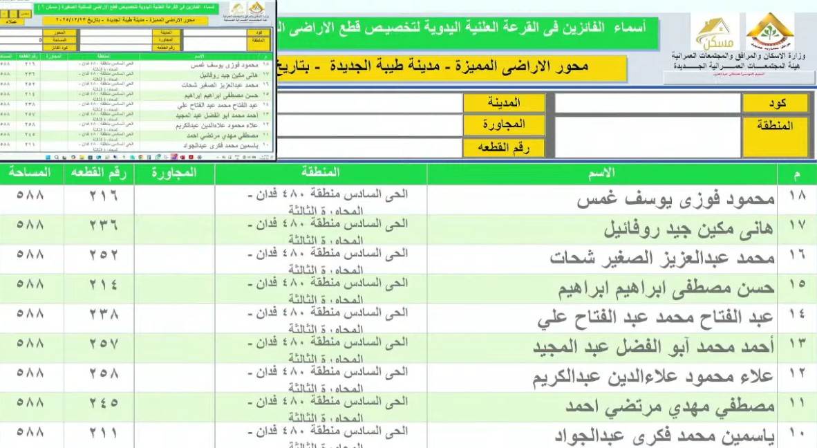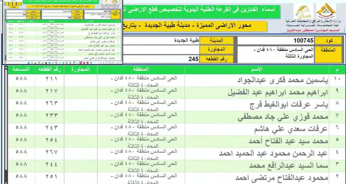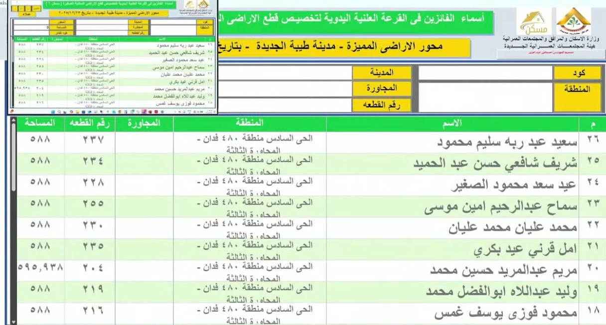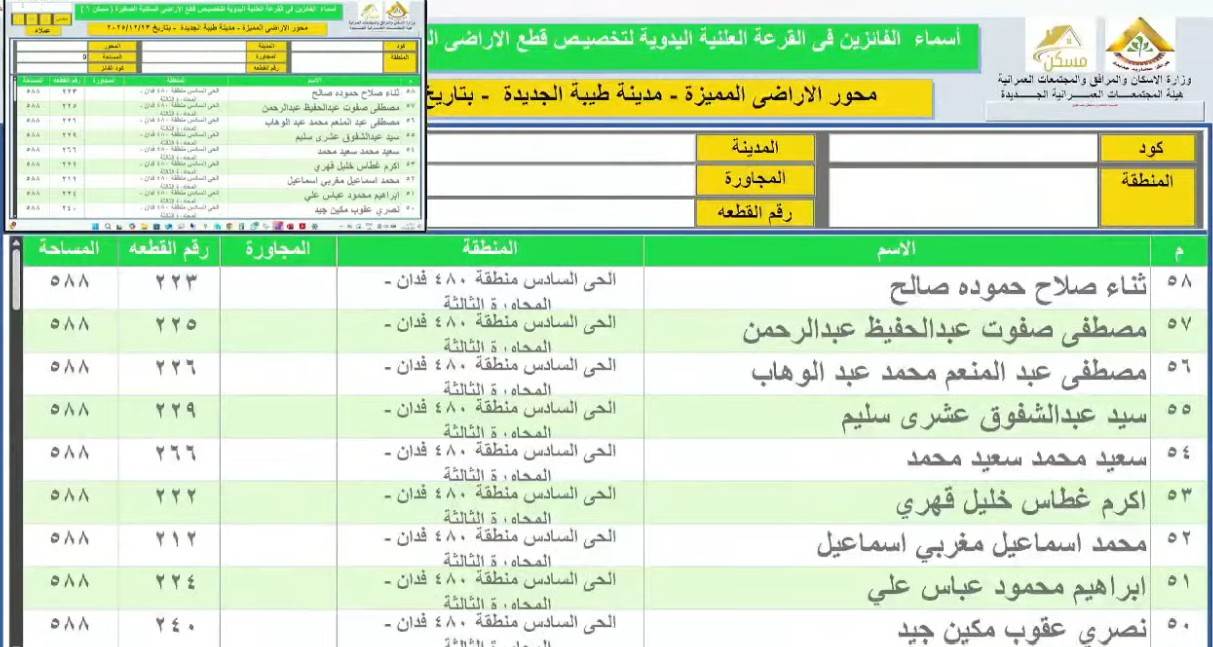 وينشر المؤشر أسماء الفائزين في القرعة اليدوية لليوم الثاني لقطع الأراضي المميزة بمدينة طيبة الجديدة: