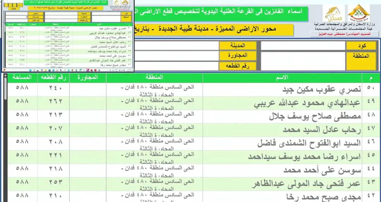 أسماء الفائزين بقطع الأراضي المميزة بمدينة طيبة الجديدة