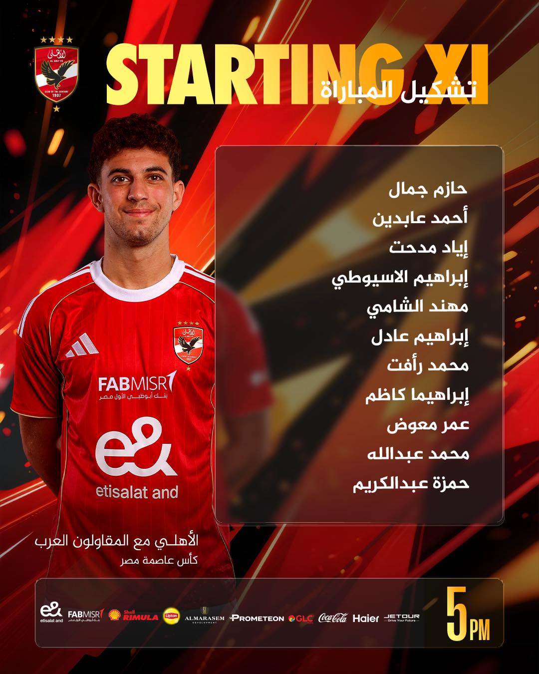 وشهد التشكيل اعتماد توروب على لاعبي الشباب وقطاع الناشئين، في خطوة تهدف لمنحهم فرصة الظهور ومشاركة الفريق في المباريات الرسمية.