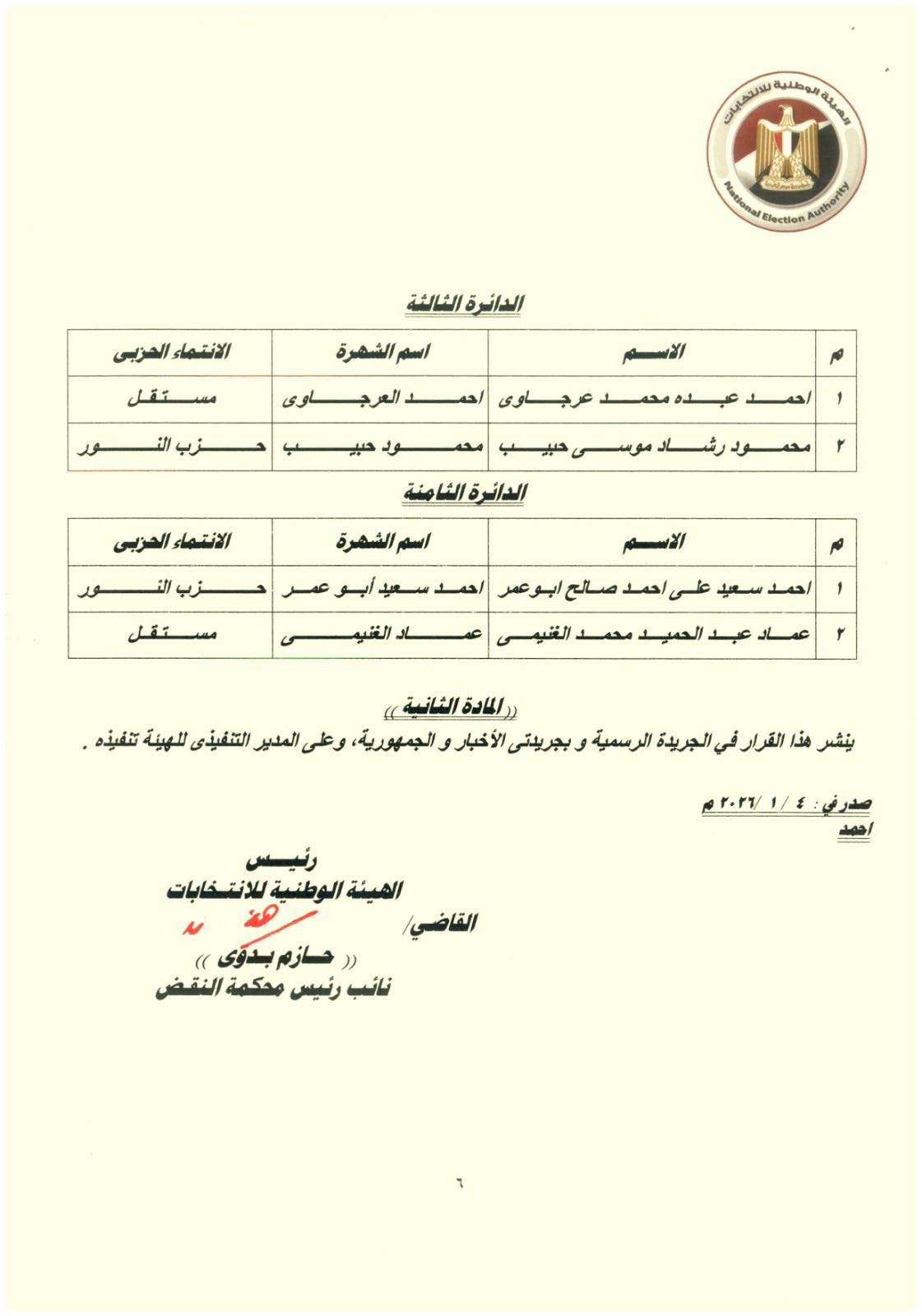 وأوضح أن مجلس إدارة الهيئة الوطنية للانتخابات عقد عدة اجتماعات عقب انتهاء التصويت، لدراسة التظلمات المقدمة بشأن عمليتي الاقتراع والفرز، وبعد مراجعة دقيقة لكشوف الناخبين وبطاقات التصويت، تقرر إبطال نتائج اللجنة الفرعية رقم 45 التابعة للدائرة الثالثة بمركز أبو حمص بمحافظة البحيرة، لثبوت وجود عيب جوهري أثر في سلامة إجراءات الاقتراع والفرز.