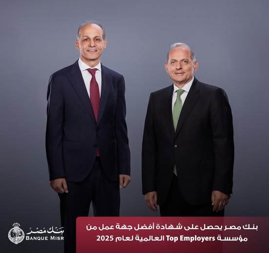 حصل بنك مصر على شهادة أفضل جهة عمل لعام 2025 وفق تقييم مؤسسة Top Employers العالمية الرائدة في تقييم استراتيجيات الموارد البشرية، وتقديم الدعم للمؤسسات لتطوير ممارسات فعّالة، وتحسين الأداء، وتعزيز قدرتها على جذب الكفاءات والاحتفاظ بها، في تأكيد جديد على ريادته في تطوير رأس المال البشري وتعزيز معايير التميّز المؤسسي.