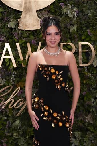 كما رفعت سلمى شعرها للأعلى ونسقت الإطلالة بعقد فاخر من شوبارد، مما أكسبها لمسة من الأناقة الملكية.