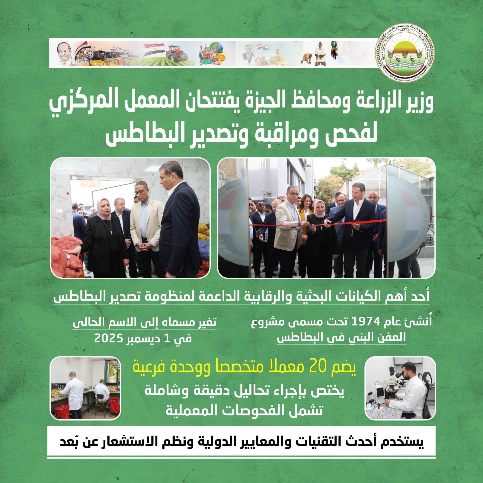 وزير الزراعة ومحافظ الجيزة يفتتحان المعمل المركزي لفحص ومراقبة وتصدير البطاطس
