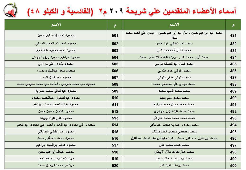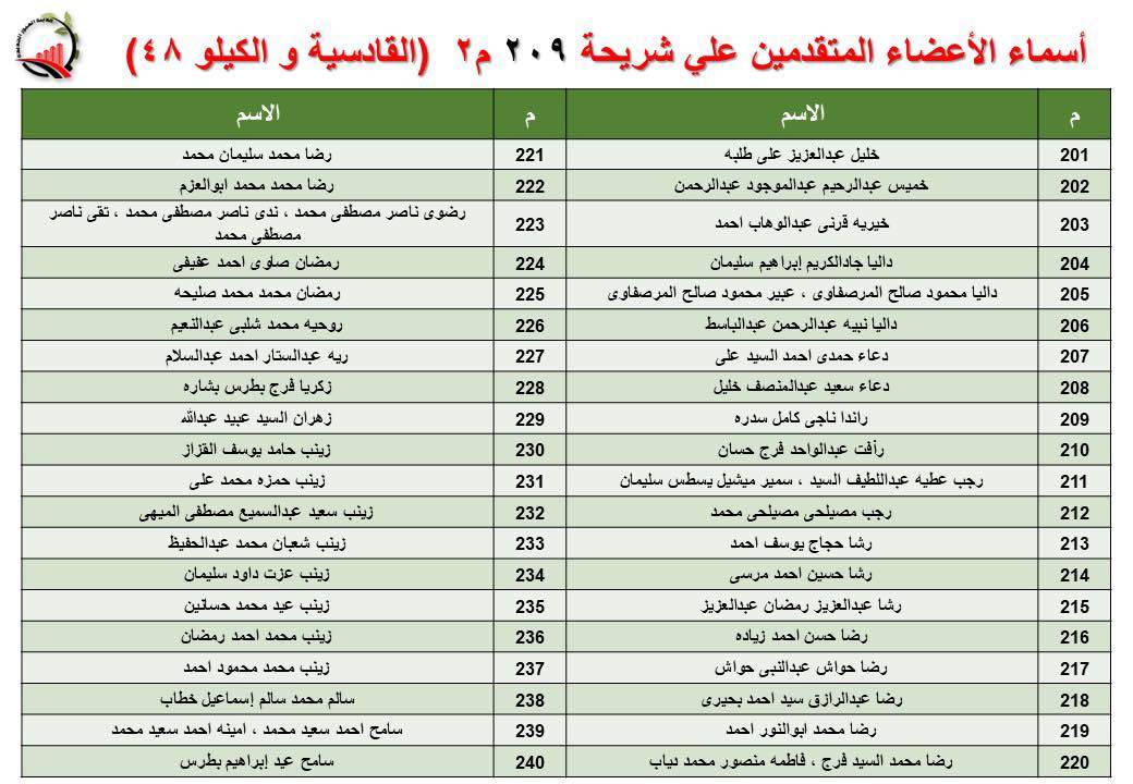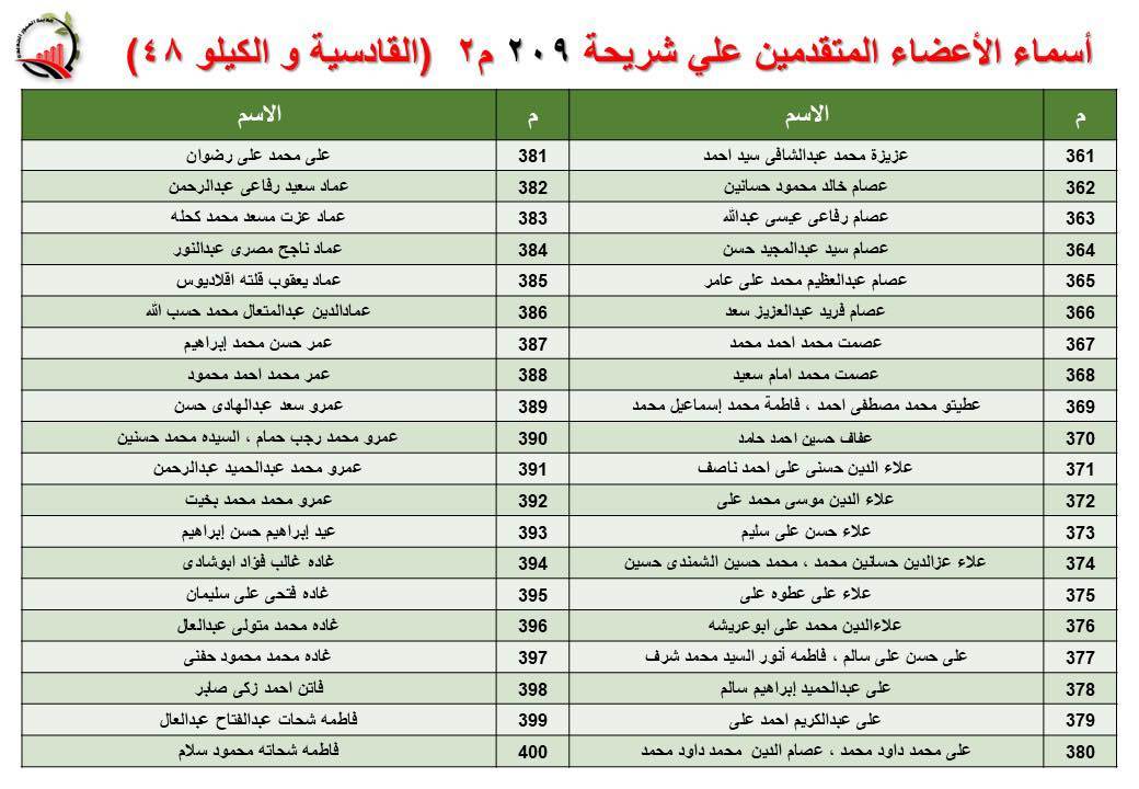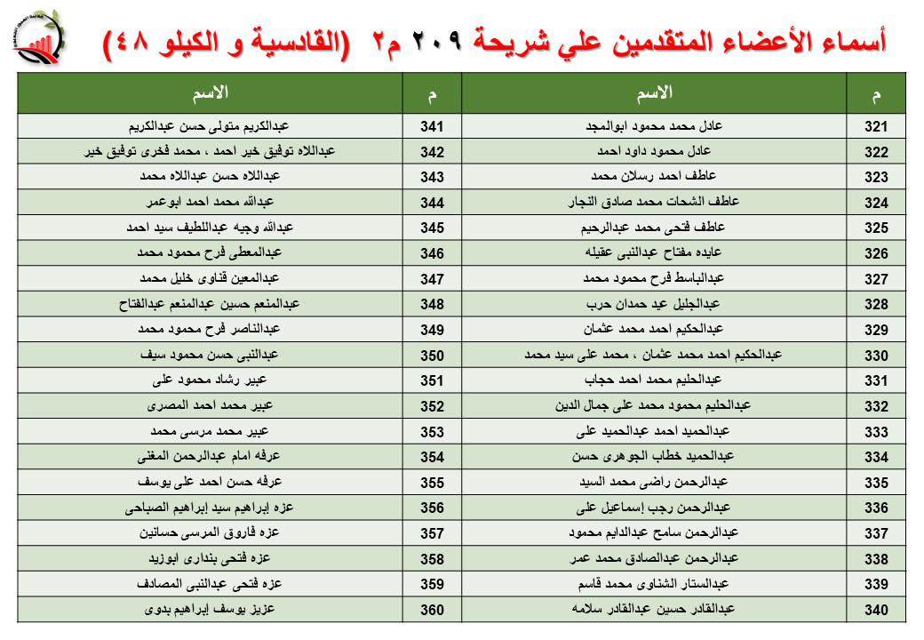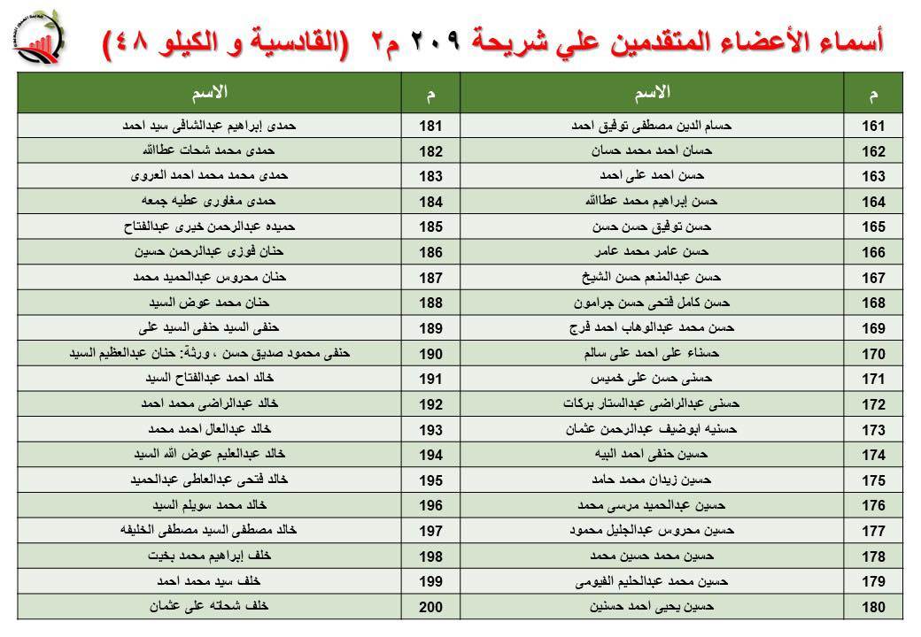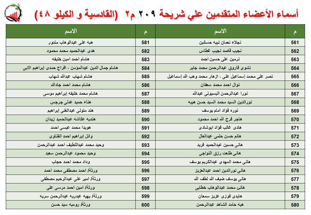 جهاز العبور الجديدة يعلن أسماء قرعة الـ 30 لشريحة 209 بالقادسية والكيلو 48
