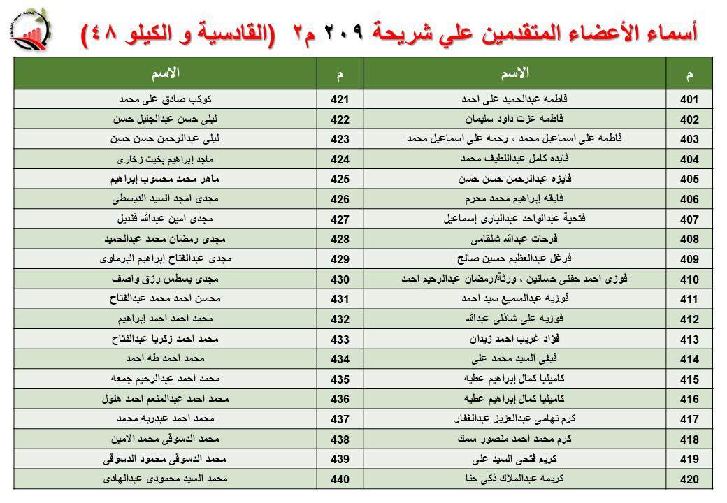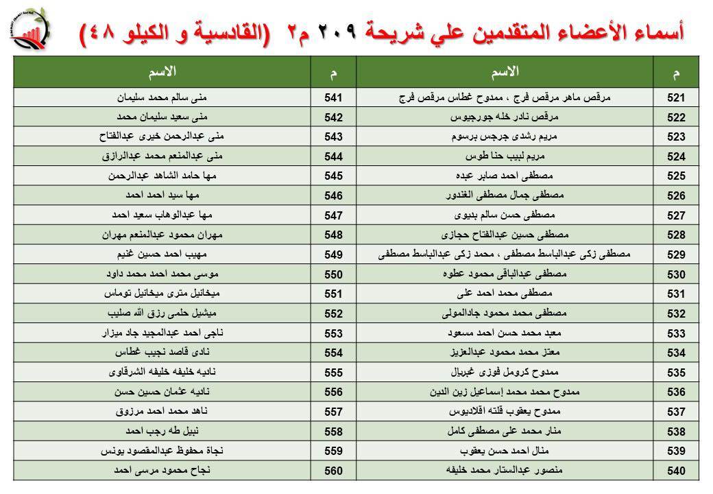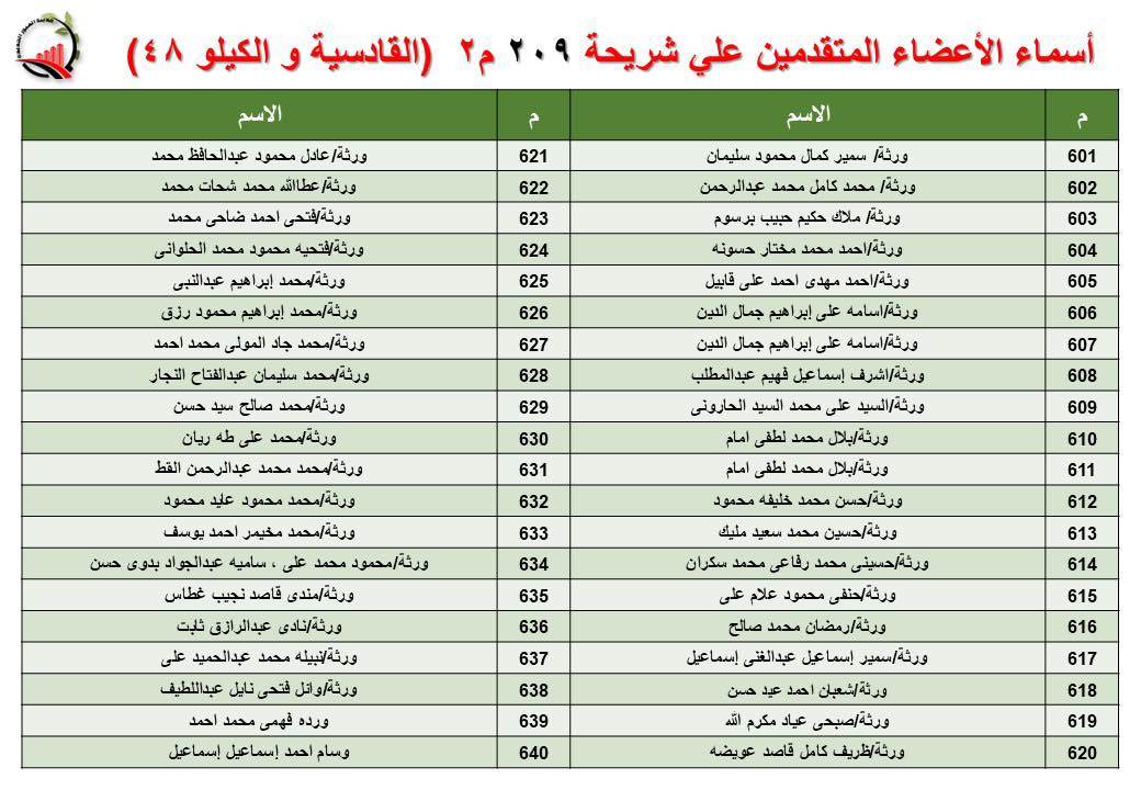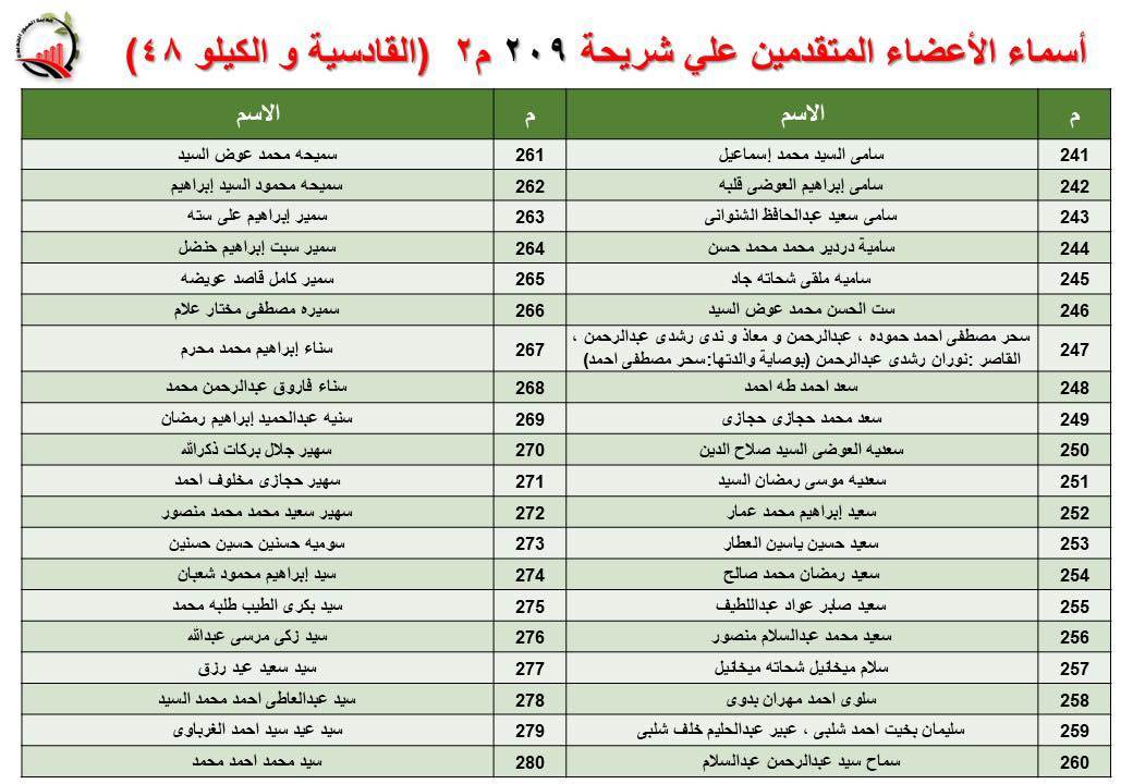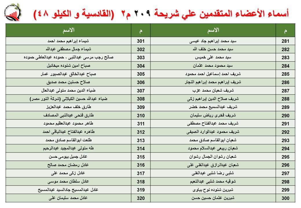 جهاز العبور الجديدة يعلن أسماء قرعة الـ 30 لشريحة 209 بالقادسية والكيلو 48