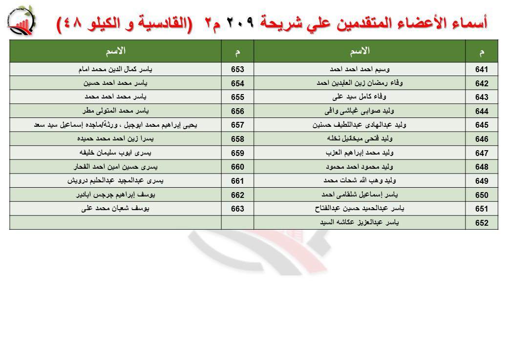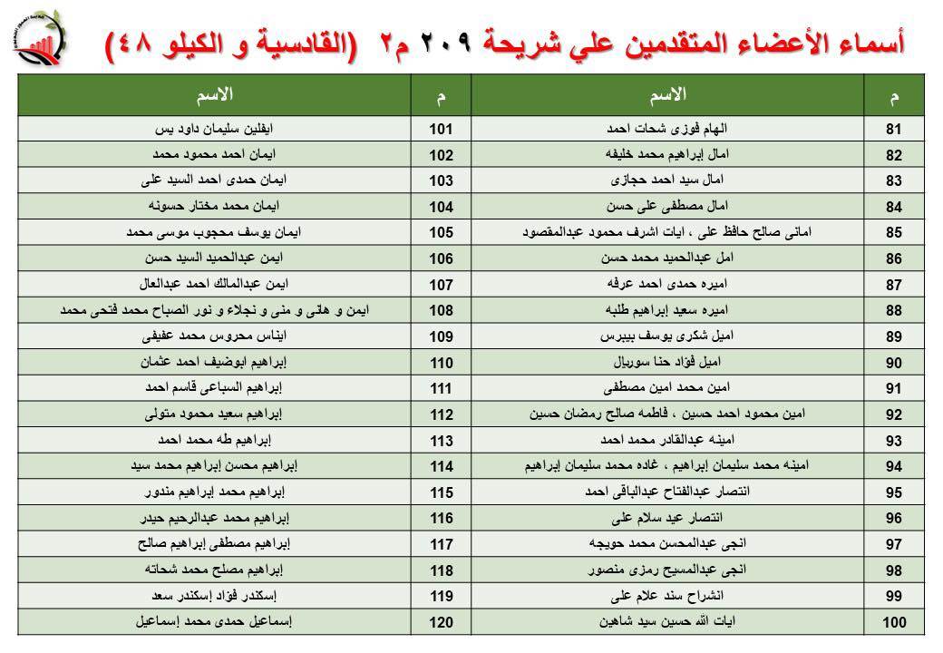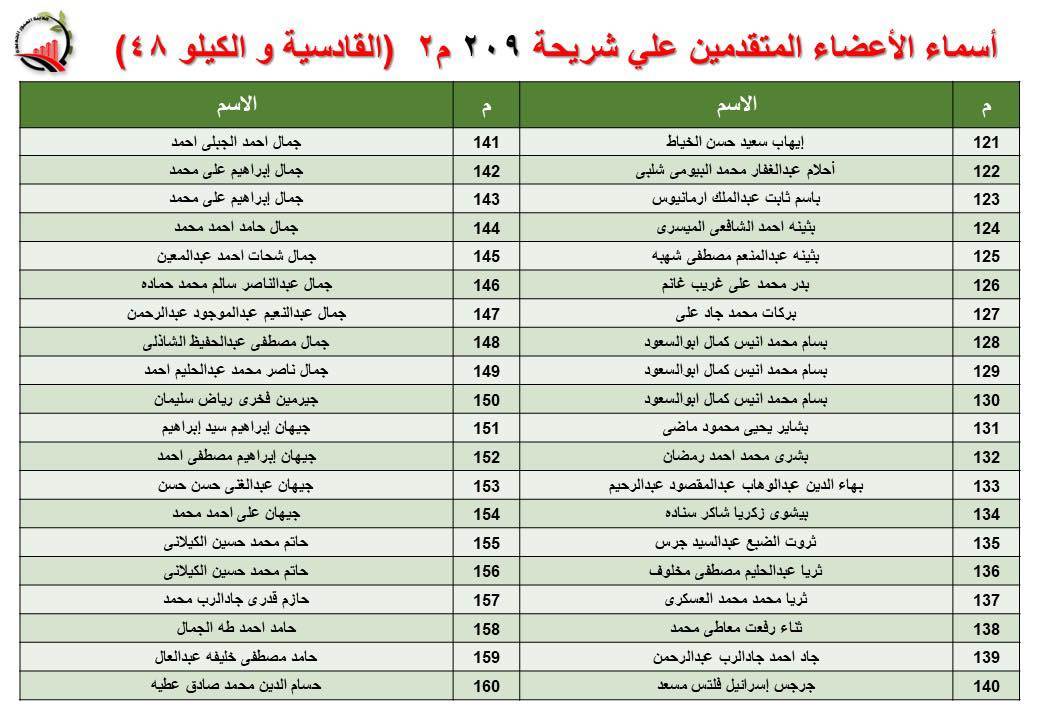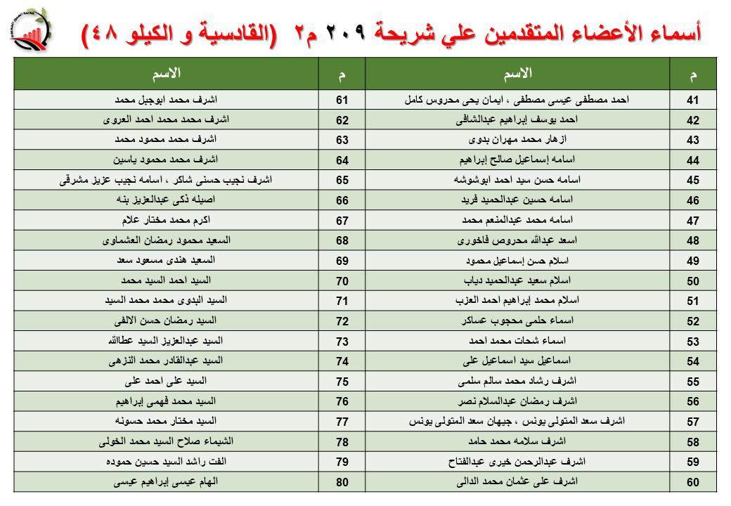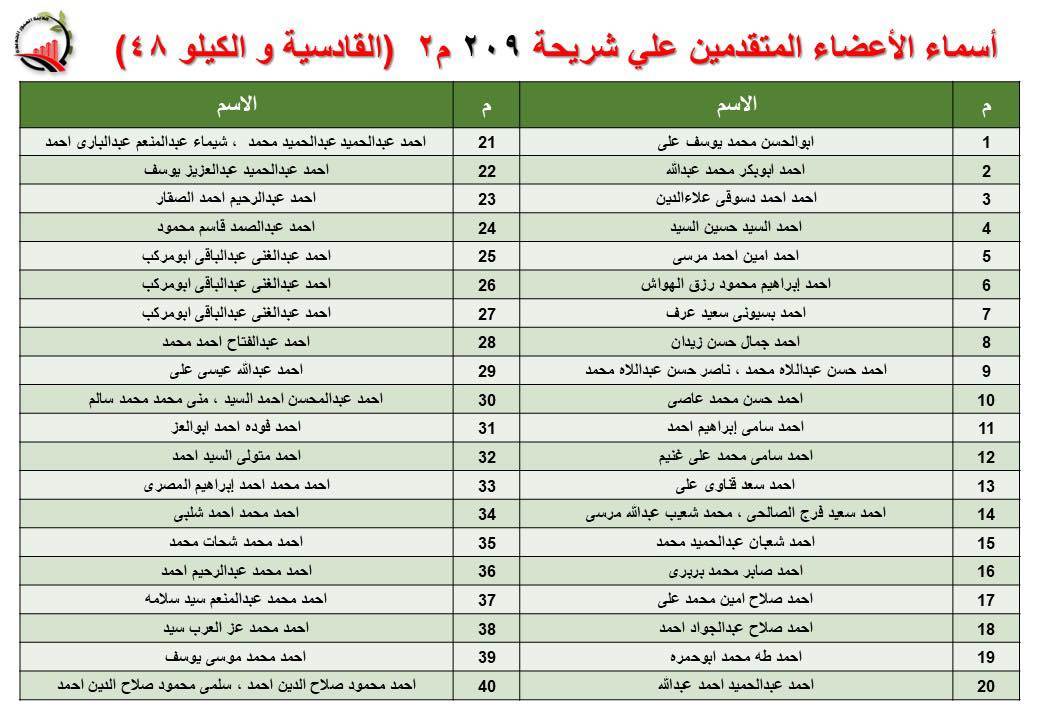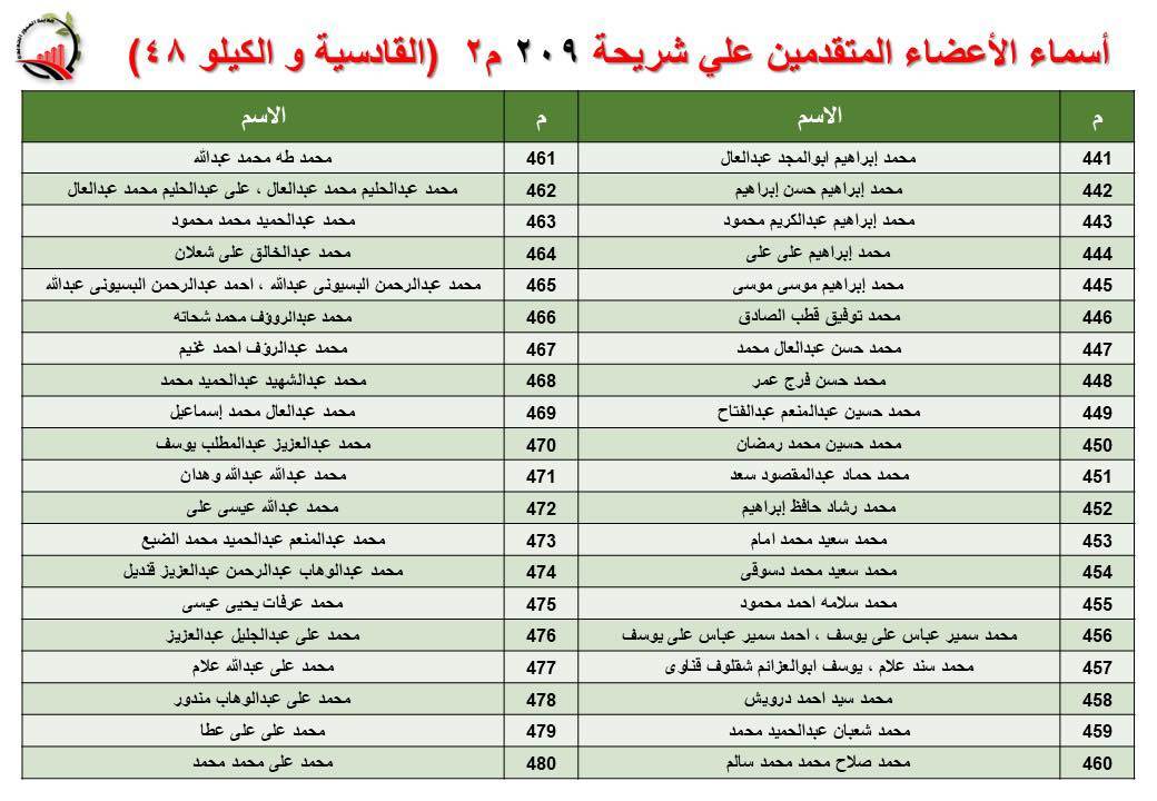 جهاز العبور الجديدة يعلن أسماء قرعة الـ 30 لشريحة 209 بالقادسية والكيلو 48