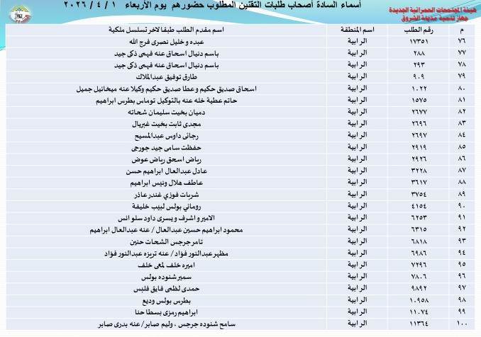 جهاز مدينة الشروق يعتمد أسماء الدفعة 100 من حائزي الأراضي المضافة