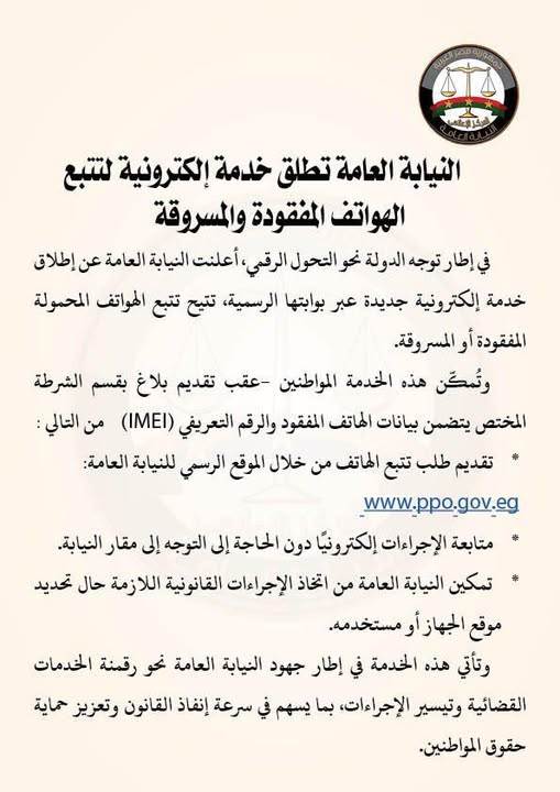 - تقديم طلب تتبع الهاتف من خلال الموقع الرسمي للنيابة العامة: www.ppo.gov.eg